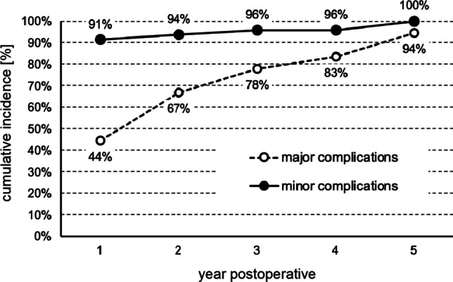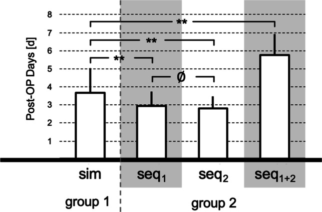 Results: In group 1, the total operating room time was significantly shorter. The incidences of minor and major surgical complications showed no statistically significant differences. A fatal non-surgical complication in group 1 was particularly extensively reappraised without evidence of a causal relationship to the chosen mode of care. The duration of hospitalization was 0.7 days longer than in unilateral implantation but 2.8 days shorter than the combined two hospital stays in group 2.