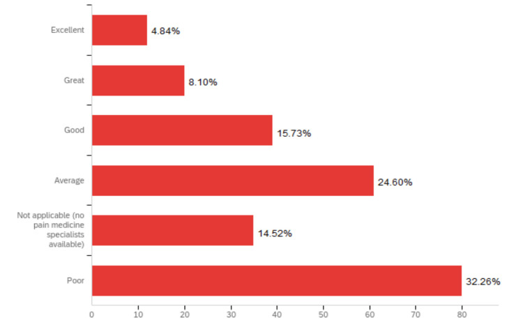 Background Pain is a common complaint in the emergency department (ED), yet there is a lack of robust pain curricula in emergency medicine (EM) residency programs. In this study, we investigated pain education in EM residencies and various factors related to educational development. Methodology This was a prospective study collecting online survey results sent to Program Directors, Associate Program Directors, and Assistant Program Directors of EM residencies in the United States. Descriptive analyses with nonparametric tests were performed to investigate relationships between these factors, including educational hours, level of educational collaboration with pain medicine specialists, and multimodal therapy utilization. Results The overall individual response rate was 39.8% (252 out of 634 potential respondents), representing 164 out of 220 identified EM residencies with 110 (50%) Program Directors responding. Traditional classroom lectures were the most common modality for the delivery of pain medicine content. EM textbooks were the most common resource utilized for curriculum development. An average of 5.7 hours per year was devoted to pain education. Up to 46.8% of respondents reported poor or absent educational collaboration with pain medicine specialists. Greater collaboration levels were associated with greater hours devoted to pain education (p = 0.01), perceived resident interest in acute and chronic pain management education (p < 0.001), and resident utilization of regional anesthesia (p = <0.01). Faculty and resident interest in acute and chronic pain management education were similar to each other and high on the Likert scale, with higher scores correlating to greater hours devoted to pain education (p = 0.02 and 0.01, respectively). Faculty expertise in pain medicine was rated the most important factor in improving pain education in their programs. Conclusions Pain education is a necessity for residents to adequately treat pain in the ED, but remains challenging and undervalued. Faculty expertise was identified as a factor limiting pain education among EM residents. Collaboration with pain medicine specialists and recruitment of EM faculty with expertise in pain medicine are ways to improve pain education of EM residents.