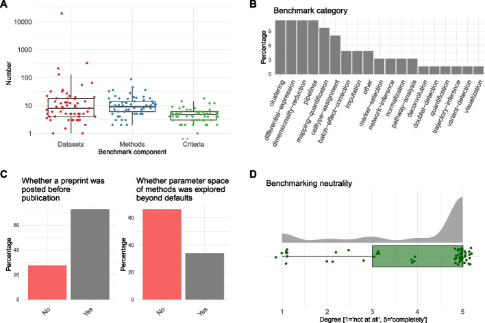 Computational methods represent the lifeblood of modern molecular biology. Benchmarking is important for all methods, but with a focus here on computational methods, benchmarking is critical to dissect important steps of analysis pipelines, formally assess performance across common situations as well as edge cases, and ultimately guide users on what tools to use. Benchmarking can also be important for community building and advancing methods in a principled way. We conducted a meta-analysis of recent single-cell benchmarks to summarize the scope, extensibility, and neutrality, as well as technical features and whether best practices in open data and reproducible research were followed. The results highlight that while benchmarks often make code available and are in principle reproducible, they remain difficult to extend, for example, as new methods and new ways to assess methods emerge. In addition, embracing containerization and workflow systems would enhance reusability of intermediate benchmarking results, thus also driving wider adoption.