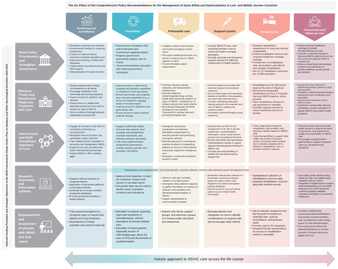 Methods: Recently, the Comprehensive Policy Recommendations for the Management of Spina Bifida and Hydrocephalus in Low- and Middle-Income Countries (CHYSPR) and the Intersectoral Global Action Plan on Epilepsy and other Neurological Disorders (IGAP) publications emphasized the need for a more unified approach to SB care. Although both documents discuss other neurological conditions, they support SB as a congenital malformation needing attention.