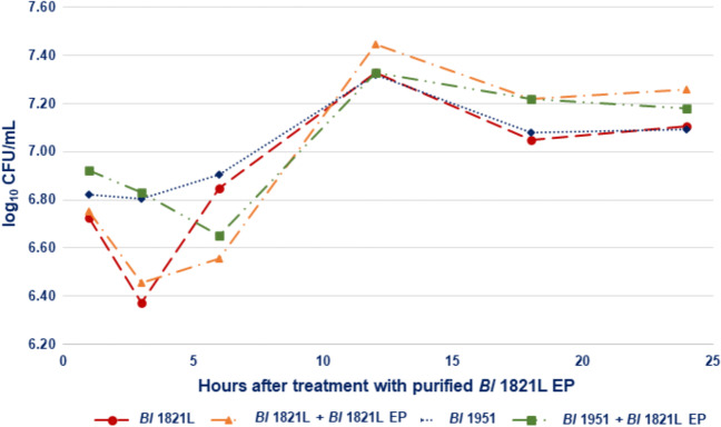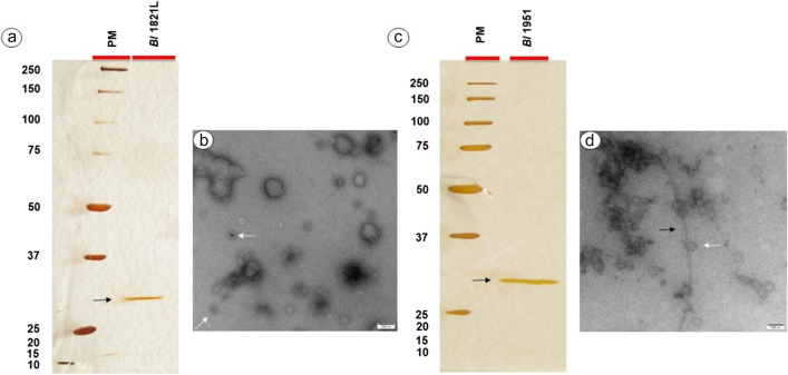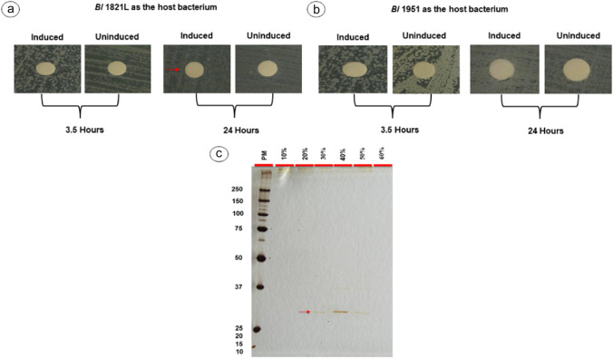 Brevibacillus laterosporus (Bl) is a Gram-positive and spore-forming bacterium. Insect pathogenic strains have been characterised in New Zealand, and two isolates, Bl 1821L and Bl 1951, are under development for use in biopesticides. However, growth in culture is sometimes disrupted, affecting mass production. Based on previous work, it was hypothesised that Tectiviridae phages might be implicated. While investigating the cause of the disrupted growth, electron micrographs of crude lysates showed structural components of putative phages including capsid and tail-like structures. Sucrose density gradient purification yielded a putative self-killing protein of ~30 kDa. N-terminal sequencing of the ~30 kDa protein identified matches to a predicted 25 kDa hypothetical and a 31.4 kDa putative encapsulating protein homologs, with the genes encoding each protein adjacent in the genomes. BLASTp analysis of the homologs of 31.4 kDa amino acid sequences shared 98.6% amino acid identity to the Linocin M18 bacteriocin family protein of Brevibacterium sp. JNUCC-42. Bioinformatic tools including AMPA and CellPPD defined that the bactericidal potential originated from a putative encapsulating protein. Antagonistic activity of the ~30 kDa encapsulating protein of Bl 1821L and Bl 1951during growth in broth exhibited bacterial autolytic activity. LIVE/DEAD staining of Bl 1821L cells after treatment with the ~30 kDa encapsulating protein of Bl 1821L substantiated the findings by showing 58.8% cells with the compromised cell membranes as compared to 37.5% cells in the control. Furthermore, antibacterial activity of the identified proteins of Bl 1821L was validated through gene expression in a Gram-positive bacterium Bacillus subtilis WB800N. KEY POINTS: • Gene encoding the 31.4 kDa antibacterial Linocin M18 protein was identified • It defined the autocidal activity of Linocin M18 (encapsulating) protein • Identified the possible killing mechanism of the encapsulins.