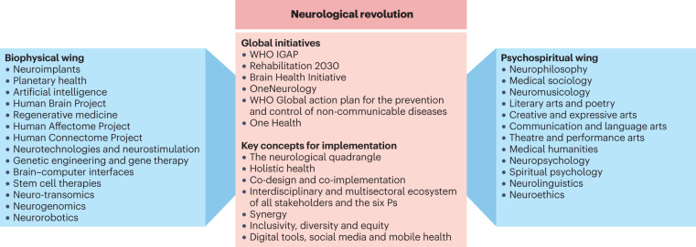 The global burden of neurological disorders is substantial and increasing, especially in low-resource settings. The current increased global interest in brain health and its impact on population wellbeing and economic growth, highlighted in the World Health Organization's new Intersectoral Global Action Plan on Epilepsy and other Neurological Disorders 2022-2031, presents an opportunity to rethink the delivery of neurological services. In this Perspective, we highlight the global burden of neurological disorders and propose pragmatic solutions to enhance neurological health, with an emphasis on building global synergies and fostering a 'neurological revolution' across four key pillars - surveillance, prevention, acute care and rehabilitation - termed the neurological quadrangle. Innovative strategies for achieving this transformation include the recognition and promotion of holistic, spiritual and planetary health. These strategies can be deployed through co-design and co-implementation to create equitable and inclusive access to services for the promotion, protection and recovery of neurological health in all human populations across the life course.