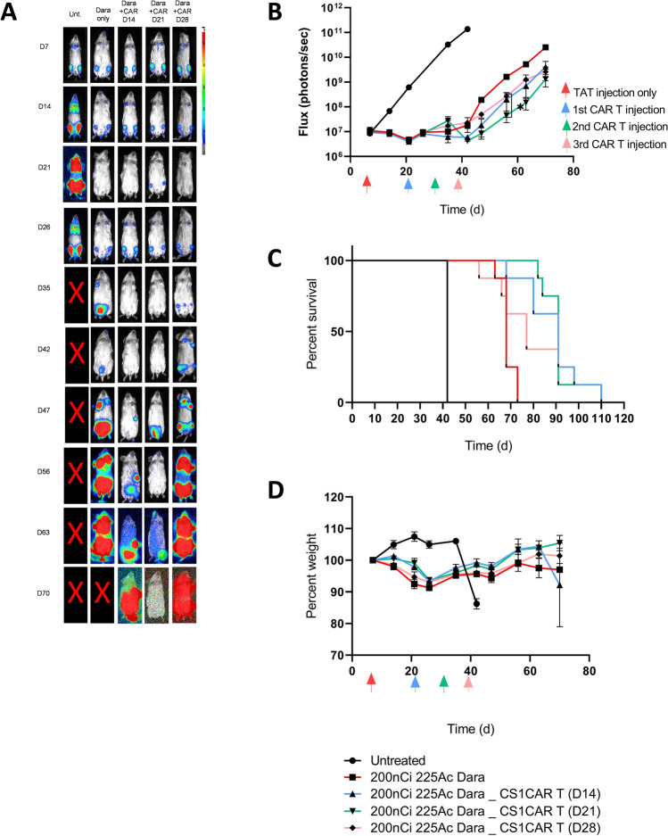 Sequential CAR T cell and targeted alpha immunotherapy in disseminated multiple myeloma
