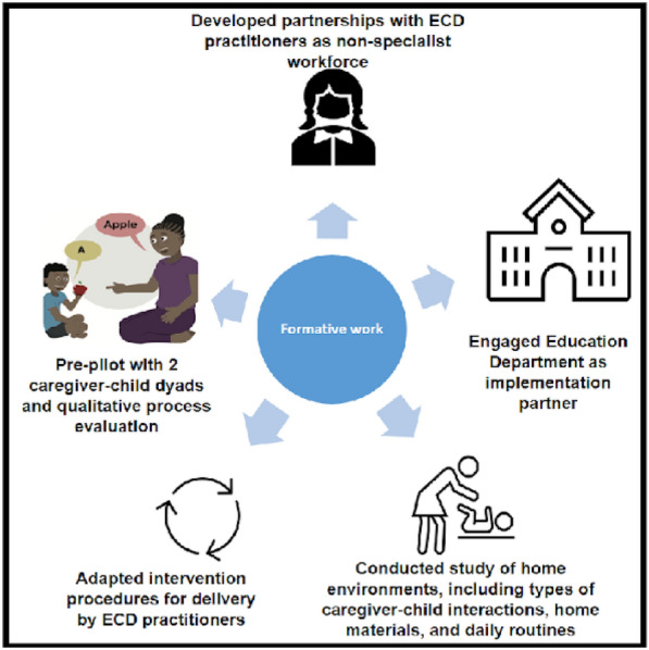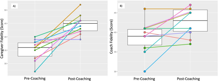 Results: Caregiver implementation fidelity increased in 10/10 participants. Non-specialists demonstrated a significant increase in coaching fidelity (increases in 7/10 dyads). Significant gains were seen on two Griffiths-III subscales (Language/Communication-9/10 improved, Foundations of Learning-10/10 improved) and on the General Developmental Quotient (9/10 improved). Significant gains were also seen on two Vineland Adaptive Behaviour Scales (Third Edition) subscales (Communication-9/10 improved, Socialization-6/10 improved) and in the Adaptive Behaviour Standard Score (9/10 improved). Caregiver sense of competence improved in 7/10 caregivers and caregiver stress in 6/10 caregivers.