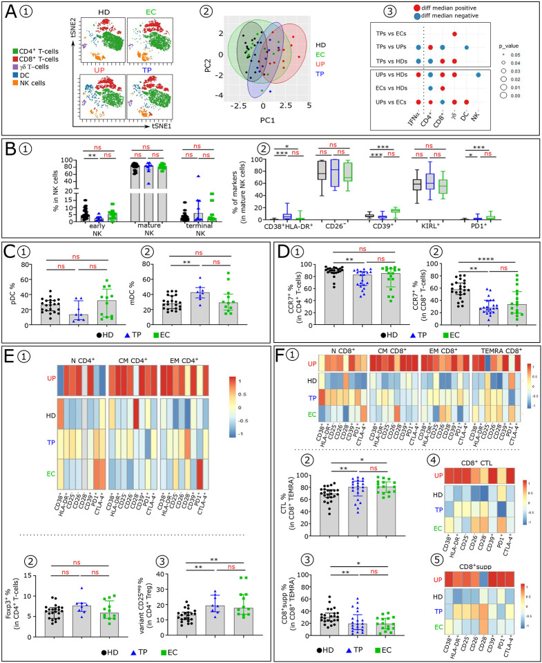 Like EC, we find that ART-treated patients control serum IFNα concentration and show few immune cell alterations enabling a healthy but fragile medical status. However, treatment interruption leads to elevated IFNα reflecting virus production indicating that like EC, ART does not achieve a virological cure. The immune system becomes overwhelmed by multiple immune cell abnormalities as found in untreated patients. These are chiefly mediated by elevated IFNα inducing signaling checkpoints abnormalities, including PD1, in cytotoxic immune cells. Importantly, during acute infection, elevated IFNα correlated with HIV load and we found that IFNα enhances CCR5, the HIV coreceptor in CD4+ T-cells, impairing its anti-viral response and accounting for the pathogenic vicious cycle: HIV → IFNα ↗ → infected CD4+ T-cells ↗ →HIV ↗. This study opens immunotherapeutic perspectives showing the need to control IFNα in order to convert ART patients into EC.