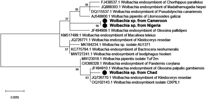 Molecular detection of Sodalis glossinidius, Spiroplasma species and Wolbachia endosymbionts in wild population of tsetse flies collected in Cameroon, Chad and Nigeria.BMC Microbiol. 2023 Sep 16;23(1):260. doi: 10.1186/s12866-023-03005-6. BMC Microbiol. 2023. PMID: 37716961 Free PMC article.