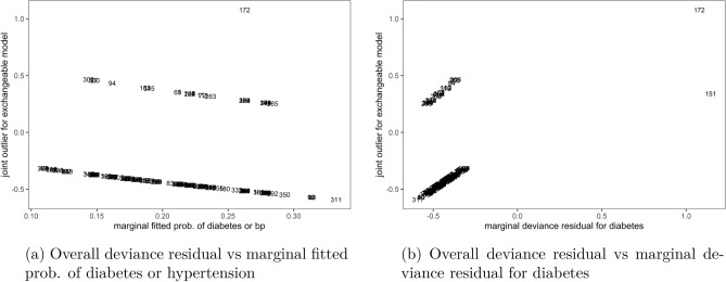 The joint occurrence of diabetes and hypertension conditions in a patient is common. The two diseases share a number of risk factors, and are hence usually modelled concurrently using bivariate logistic regression. However, the postestimation assessment for the model, such as analysis of outlier observations, is seldom carried out. In this article, we apply outlier detection methods for multivariate data models to study characteristics of cancer patients with joint outlying diabetes and hypertension outcomes observed from among 398 randomly selected cancer patients at Queen Elizabeth and Kamuzu Central Hospitals in Malawi. We used R software version 4.2.2 to perform the analyses and STATA version 12 for data cleaning. The results showed that one patient was an outlier to the bivariate diabetes and hypertension logit model. The patient had both diabetes and hypertension and was based in rural area of the study population, where it was observed that comorbidity of the two diseases was uncommon. We recommend thorough analysis of outlier patients to comorbid diabetes and hypertension before rolling out interventions for managing the two diseases in cancer patients to avoid misaligned interventions. Future research could perform the applied diagnostic assessments for the bivariate logit model on a wider and larger dataset of the two diseases.