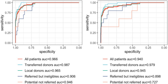 Organ donation is not meeting demand, and yet 30-60% of potential donors are potentially not identified. Current systems rely on manual identification and referral to an Organ Donation Organization (ODO). We hypothesized that developing an automated screening system based on machine learning could reduce the proportion of missed potentially eligible organ donors. Using routine clinical data and laboratory time-series, we retrospectively developed and tested a neural network model to automatically identify potential organ donors. We first trained a convolutive autoencoder that learned from the longitudinal changes of over 100 types of laboratory results. We then added a deep neural network classifier. This model was compared to a simpler logistic regression model. We observed an AUROC of 0.966 (CI 0.949-0.981) for the neural network and 0.940 (0.908-0.969) for the logistic regression model. At a prespecified cutoff, sensitivity and specificity were similar between both models at 84% and 93%. Accuracy of the neural network model was robust across donor subgroups and remained stable in a prospective simulation, while the logistic regression model performance declined when applied to rarer subgroups and in the prospective simulation. Our findings support using machine learning models to help with the identification of potential organ donors using routinely collected clinical and laboratory data.
