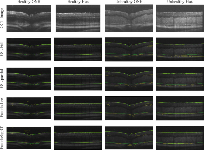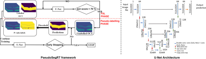 Conclusion: Our approach demonstrates the potential of using pseudo-labelling strategies in real-time OCT segmentation tasks to guide robotic systems. Furthermore, the accelerated GPU inference of our network is highly promising for segmenting OCT images and guiding the position of a surgical tool (e.g. needle) for sub-retinal injections.