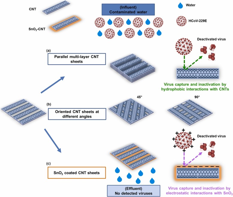 Keywords: Antiviral metal oxide coatings; Carbon nanotube membrane; Fast water permeation; Human Coronavirus 229E; Virus ultrafiltration.