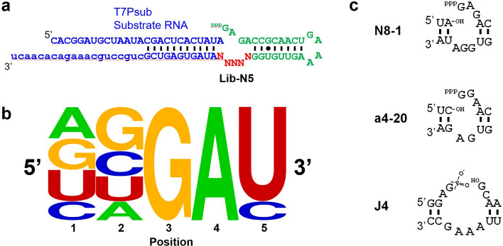 Catalytic RNAs, or ribozymes, catalyze diverse chemical reactions that could have sustained primordial life in the hypothetical RNA world. Many natural ribozymes and laboratory evolved ribozymes exhibit efficient catalysis mediated by elaborate catalytic cores within complex tertiary structures. However, such complex RNA structures and sequences are unlikely to have emerged by chance during the earliest phase of chemical evolution. Here, we explored simple and small ribozyme motifs capable of ligating two RNA fragments in a template-directed fashion (ligase ribozymes). One-round selection of small ligase ribozymes followed by deep sequencing revealed a ligase ribozyme motif comprising a three-nucleotide loop opposite to the ligation junction. The observed ligation was magnesium(II) dependent and appears to form a 2'-5' phosphodiester linkage. The fact that such a small RNA motif can function as a catalyst supports a scenario in which RNA or other primordial nucleic acids played a central role in chemical evolution of life.