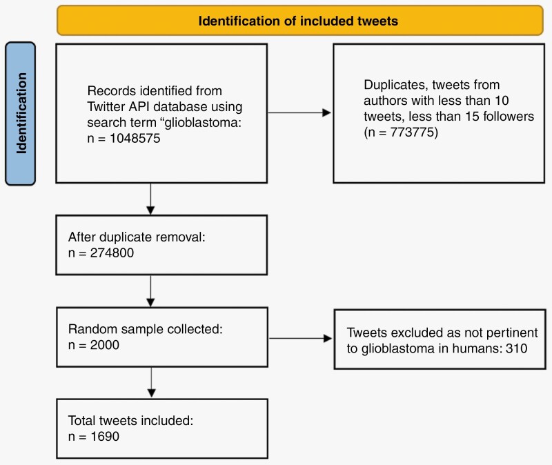 Background: Given the potential for social media to allow widespread public engagement, its role in healthcare, including in cancer care as a support network, is garnering interest. To date, the use of social media in neuro-oncology has not been systematically explored. In the current manuscript, we sought to review Twitter use on glioblastoma among patients, caregivers, providers, researchers, and other stakeholders.