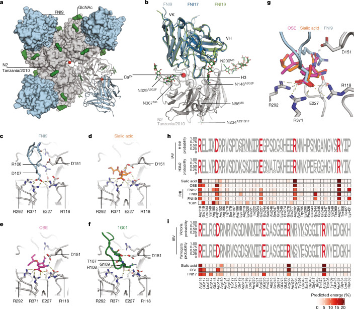 A pan-influenza antibody inhibiting neuraminidase via receptor mimicry