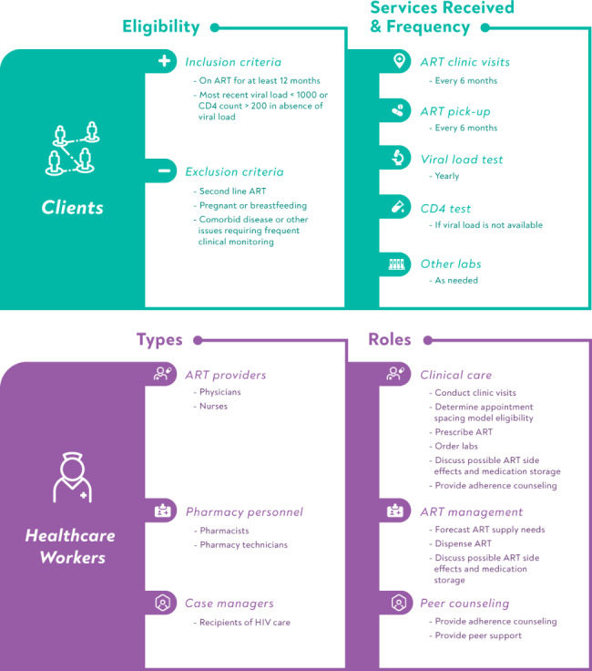 Conclusions: ASM with 6-MMD was perceived to have marked benefits for clients and health systems. Clients enrolled in the ASM and their HCWs had positive experiences with the model, including perceived improvements in efficiency, quality and convenience of HIV treatment services. The concerns of non-ASM enrolled participants suggest the need for enhanced client education about the model and more discreet and efficiently packaged ART and highlight that ASM is not ideal for all clients.