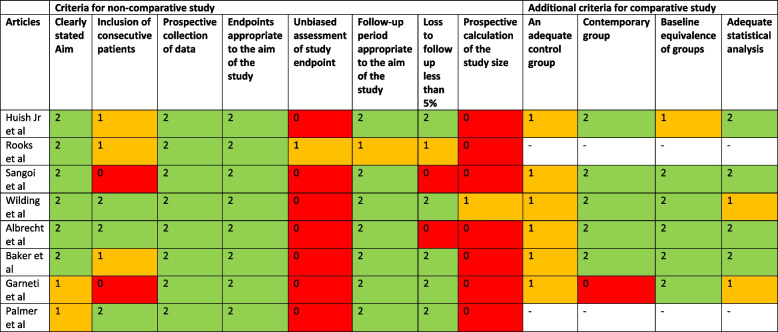 Methods: This systematic review was conducted by following PRISMA guidelines. Three electronic databases were searched utilizing a search strategy developed with the aid of a department librarian. Study quality was assessed using MINROS criteria. Article screening, methodological quality assessment and data extraction were performed by two independent authors, and a third senior author was consulted if consensus was not reached.