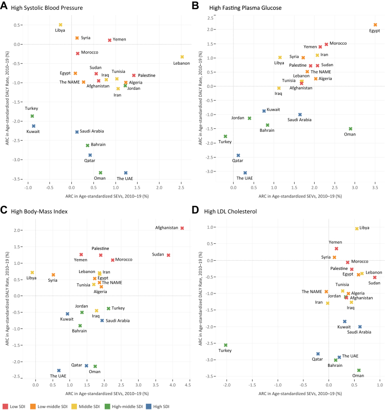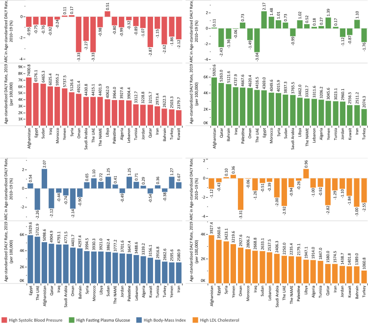 Keywords: Global burden of disease; High body-mass index; High fasting plasma glucose; High systolic blood pressure; High-LDL; Metabolic risk factors; North Africa and the Middle East.
