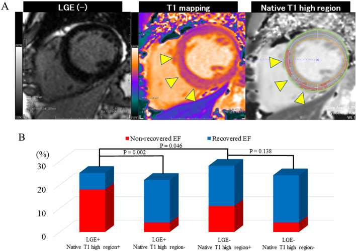 Native T1 high region and left ventricular ejection fraction recovery in patients with dilated cardiomyopathy