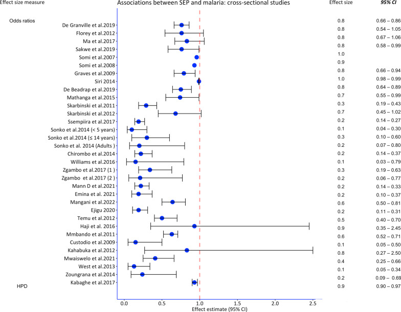 Conclusions: Few studies have conducted formal mediation analyses to elucidate pathways between SEP and malaria. Findings indicate that food security and housing could be more feasible (structural) intervention targets. Further research using well-designed longitudinal studies and improved analysis would illuminate the current sparse evidence into the pathways between SEP and malaria and adduce evidence for more potential targets for effective intervention.