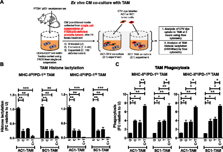 Conclusions: Abrogation of lactate-mediated cross-talk between cancer cells and TAM results in durable ADT-independent tumor control in PTEN/p53-deficient AVPC, and warrants further investigation in clinical trials.