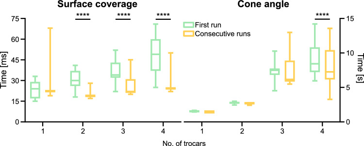 Results: Our system, based on the rotational workspace data of the robotic arm and the set of trocar locations, can calculate the optimal position of the robotic arm in milliseconds for the positional and in seconds for the rotational workspace in virtual and augmented reality setups.