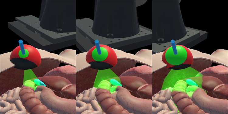 Methods: Previously, we demonstrated an Augmented Reality-based system to visualize the rotational workspace of the robotic system and proved it helps the surgical staff to optimize patient positioning for single-port interventions. In this work, we implemented a new algorithm to allow for an automatic, real-time robotic arm positioning for multiple ports.