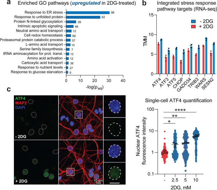 The most prevalent genetic cause of both amyotrophic lateral sclerosis and frontotemporal dementia is a (GGGGCC)n nucleotide repeat expansion (NRE) occurring in the first intron of the C9orf72 gene (C9). Brain glucose hypometabolism is consistently observed in C9-NRE carriers, even at pre-symptomatic stages, although its potential role in disease pathogenesis is unknown. Here, we identified alterations in glucose metabolic pathways and ATP levels in the brain of asymptomatic C9-BAC mice. We found that, through activation of the GCN2 kinase, glucose hypometabolism drives the production of dipeptide repeat proteins (DPRs), impairs the survival of C9 patient-derived neurons, and triggers motor dysfunction in C9-BAC mice. We also found that one of the arginine-rich DPRs (PR) can directly contribute to glucose metabolism and metabolic stress. These findings provide a mechanistic link between energy imbalances and C9-ALS/FTD pathogenesis and support a feedforward loop model that opens several opportunities for therapeutic intervention.