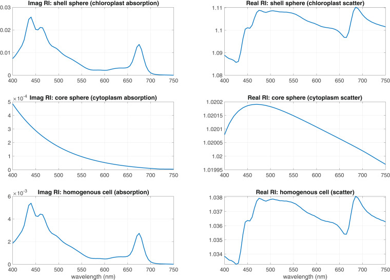 - Bernard S, Probyn TA, Quirantes A. Simulating the optical properties of phytoplankton cells using a two-layered spherical geometry. Biogeosciences Discussions. 2009;6:1.