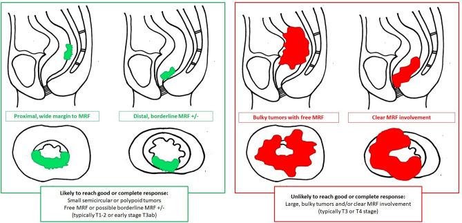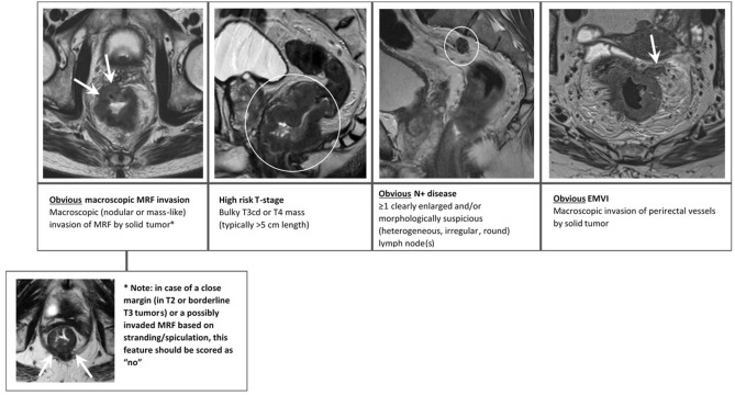 Conclusions: Visual morphologic assessment and staging methods can predict neoadjuvant treatment response with moderate-good performance. Compared to a previously published confidence-based scoring system, study readers preferred a simplified 4-point risk score based on high-risk T-stage, MRF involvement, nodal involvement, and EMVI.