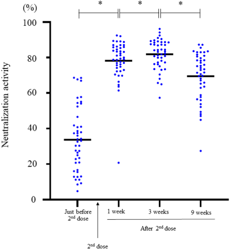 Keywords: Antibody titer; COVID-19; Neutralizing activity; mRNA vaccine.