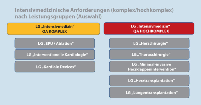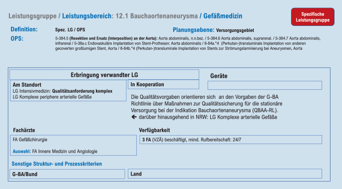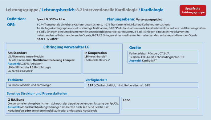 The year 2022 will mark the beginning of a new era for hospitals in North Rhine-Westphalia. With the reorganization of hospital planning in NRW to an allocation of treatment assignments via specialized medical service groups with personnel and infrastructural structural quality requirements specific for this purpose instead of via specialized departments and beds, a new form of hospital planning and structuring is implemented. This method is now proposed by the "government commission for a modern and needs-based hospital treatment" implemented by the Minister of Health Lauterbach as a structurization option for the whole of Germany in combination with hospital treatment levels. Therefore, it would be advisable to become acquainted with the possible effects on cardiovascular medicine in a timely manner, in order to anticipate possible alterations in the treatment assignments of one's own hospital as well as other hospitals with repercussions for cooperations with cardiac surgery.
