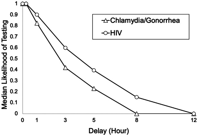 Conclusions: We found evidence for delay discounting for HIV/STI testing and that testing decisions were more susceptible to delay when the test was for relatively mild STIs.