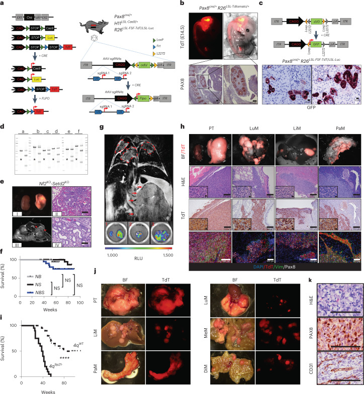 Molecular routes to metastatic dissemination are critical determinants of aggressive cancers. Through in vivo CRISPR-Cas9 genome editing, we generated somatic mosaic genetically engineered models that faithfully recapitulate metastatic renal tumors. Disruption of 9p21 locus is an evolutionary driver to systemic disease through the rapid acquisition of complex karyotypes in cancer cells. Cross-species analysis revealed that recurrent patterns of copy number variations, including 21q loss and dysregulation of the interferon pathway, are major drivers of metastatic potential. In vitro and in vivo genomic engineering, leveraging loss-of-function studies, along with a model of partial trisomy of chromosome 21q, demonstrated a dosage-dependent effect of the interferon receptor genes cluster as an adaptive mechanism to deleterious chromosomal instability in metastatic progression. This work provides critical knowledge on drivers of renal cell carcinoma progression and defines the primary role of interferon signaling in constraining the propagation of aneuploid clones in cancer evolution.