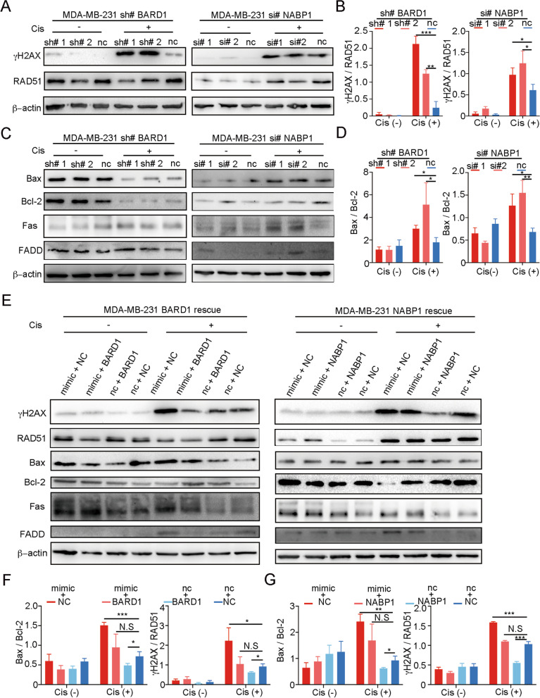 Results: The expression of miR-26a-5p was significantly downregulated in TNBC. Overexpressing miR-26a-5p enhanced the Cisplatin-induced DNA damage and following apoptosis. Interestingly, miR-26a-5p promoted the expression of Fas without Cisplatin stimulating. It suggested that miR-26a-5p provided a hypersensitivity state of death receptor apoptosis and promoted the Cisplatin sensitivity of TNBC cells in vitro and in vivo. Besides, miR-26a-5p negatively regulated the expression of BARD1 and NABP1 and resulted in homologous recombination repair defect (HRD). Notably, overexpressing miR-26a-5p not only facilitated the Olaparib sensitivity of TNBC cells but also the combination of Cisplatin and Olaparib. Furthermore, hormone receptors functioned as transcription factors in the expression of miR-26a-5p, which explained the reasons that miR-26a-5p expressed lowest in TNBC.