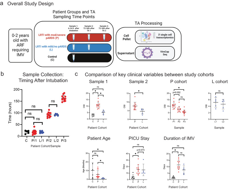 Acute respiratory distress syndrome (ARDS), termed pediatric ARDS (pARDS) in children, is a severe form of acute respiratory failure (ARF). Pathologic immune responses are implicated in pARDS pathogenesis. Here, we present a description of microbial sequencing and single cell gene expression in tracheal aspirates (TAs) obtained longitudinally from infants with ARF. We show reduced interferon stimulated gene (ISG) expression, altered mononuclear phagocyte (MNP) transcriptional programs, and progressive airway neutrophilia associated with unique transcriptional profiles in patients with moderate to severe pARDS compared to those with no or mild pARDS. We additionally show that an innate immune cell product, Folate Receptor 3 (FOLR3), is enriched in moderate or severe pARDS. Our findings demonstrate distinct inflammatory responses in pARDS that are dependent upon etiology and severity and specifically implicate reduced ISG expression, altered macrophage repair-associated transcriptional programs, and accumulation of aged neutrophils in the pathogenesis of moderate to severe pARDS caused by RSV.