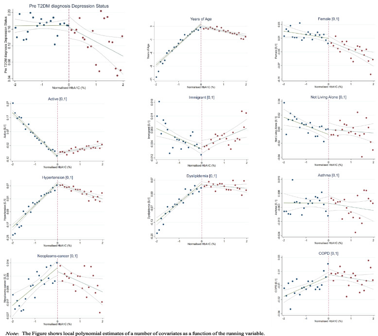 Keywords: Administrative longitudinal data; Depression; Diabetes; Fuzzy regression discontinuity design; Lifestyle changes.