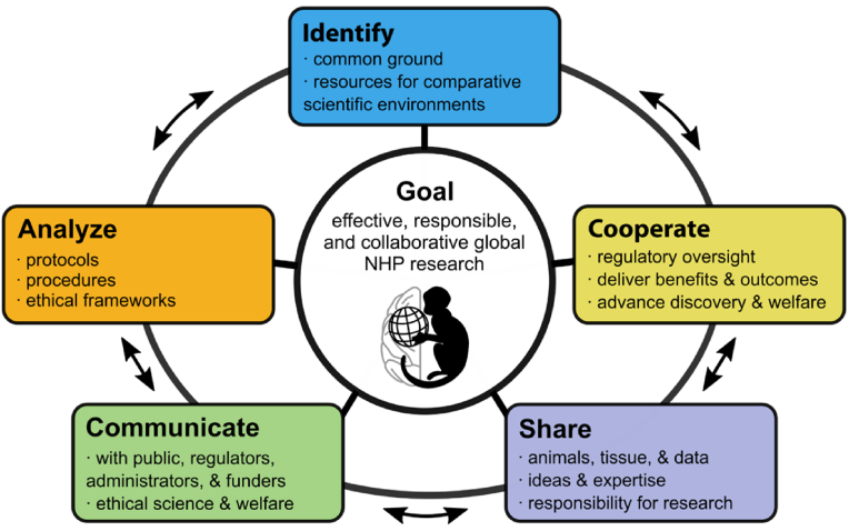 As science and technology evolve, there is an increasing need for promotion of international scientific exchange. Collaborations, while offering substantial opportunities for scientists and benefit to society, also present challenges for those working with animal models, such as non-human primates (NHPs). Diversity in regulation of animal research is sometimes mistaken for the absence of common international welfare standards. Here, the ethical and regulatory protocols for 13 countries that have guidelines in place for biomedical research involving NHPs were assessed with a focus on neuroscience. Review of the variability and similarity in trans-national NHP welfare regulations extended to countries in Asia, Europe and North America. A tabulated resource was established to advance solution-oriented discussions and scientific collaborations across borders. Our aim is to better inform the public and other stakeholders. Through cooperative efforts to identify and analyze information with reference to evidence-based discussion, the proposed key ingredients may help to shape and support a more informed, open framework. This framework and resource can be expanded further for biomedical research in other countries.