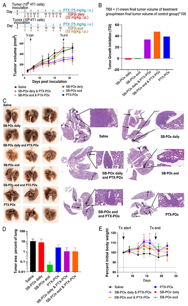 Combination of polymeric micelle formulation of TGFβ receptor inhibitors and paclitaxel produces consistent response across different mouse models of Triple-negative breast cancer.Bioeng Transl Med. 2024 Jun 4;9(5):e10681. doi: 10.1002/btm2.10681. eCollection 2024 Sep. Bioeng Transl Med. 2024. PMID: 39553439 Free PMC article.