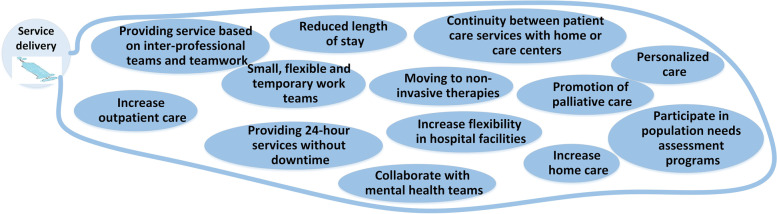 Results: In the first phase, 33 interviews led to 144 change patterns. In the second phase, a mind map of changes was drawn according to experts' opinions with ten categories: structure and role, knowledge management and research, service delivery, health forces, political and legal, economic, demographic and disease, technological, and values and philosophy, and environmental.