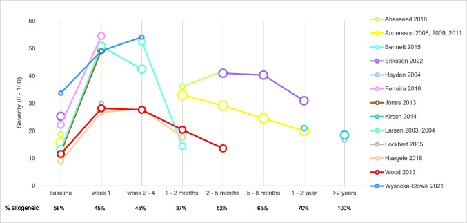 Methods: PubMed, Embase, and the Cochrane Library were searched for papers published between January 2000 and May 2022. Clinical studies were included if patient-reported subjective oral dryness was reported in adult autologous or allogeneic HSCT recipients. Risk of bias was assessed according to a quality grading strategy published by the oral care study group of the MASCC/ISOO, resulting in a score between 0 (highest risk of bias) and 10 (lowest risk of bias). Separate analysis focused on autologous HSCT recipients, allogeneic HSCT recipients receiving a myeloablative conditioning (MAC), and those receiving a reduced intensity conditioning (RIC).