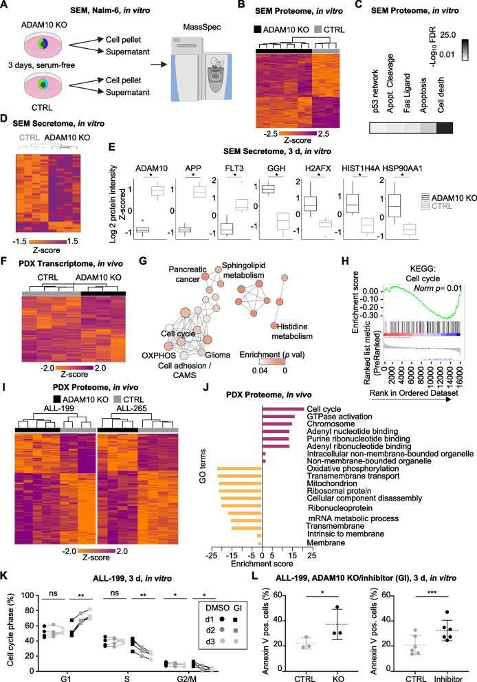 Combined proteomics and CRISPR‒Cas9 screens in PDX identify ADAM10 as essential for leukemia in vivo