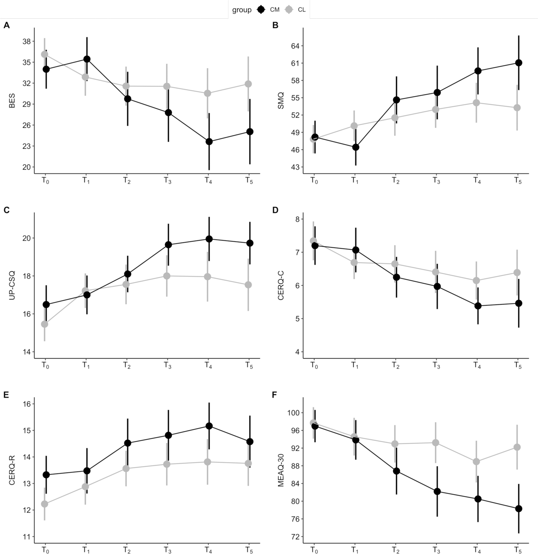 Methods: N = 224 cancer survivors randomized to CM or CL were assessed at baseline, between-modules, at post-intervention and 3-month follow-up on emotion regulation outcomes targeted by each CM module (Module 1: beliefs about emotions; Module 2: mindfulness; Module 3: cognitive reappraisal skills, catastrophizing, refocus on planning; Module 4: experiential avoidance). Primary analyses were intention-to-treat linear regressions using Fisher randomization tests for p-values and intervals were used to compare groups with standardized mean difference (SMD) effect sizes.