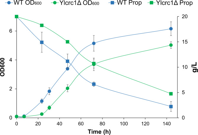 Results: In this study, we have identified the MC involved in the Carnitine/Acetyl-Carnitine shuttle in Y. lipolytica, YlCrc1. The Y. lipolytica Ylcrc1 knock-out strain failed to grow on ethanol, acetate and oleic acid, demonstrating the fundamental role of this MC in the transport of acetyl-CoA from peroxisomes and cytoplasm into mitochondria. A metabolic engineering strategy involving the deletion of YlCRC1, and the recombinant expression of propionyl-CoA transferase from Ralstonia eutropha (RePCT), improved propionate utilization and its conversion into OCFAs. These genetic modifications and a lipogenic medium supplemented with glucose and propionate as the sole carbon sources, led to enhanced accumulation of OCFAs in Y. lipolytica.