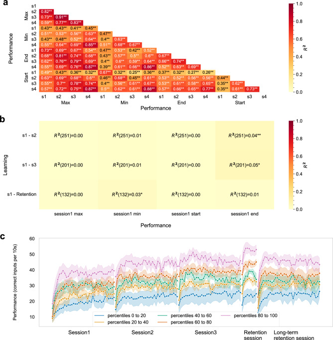 People show vast variability in skill performance and learning. What determines a person's individual performance and learning ability? In this study we explored the possibility to predict participants' future performance and learning, based on their behavior during initial skill acquisition. We recruited a large online multi-session sample of participants performing a sequential tapping skill learning task. We used machine learning to predict future performance and learning from raw data acquired during initial skill acquisition, and from engineered features calculated from the raw data. Strong correlations were observed between initial and final performance, and individual learning was not predicted. While canonical experimental tasks developed and selected to detect average effects may constrain insights regarding individual variability, development of novel tasks may shed light on the underlying mechanism of individual skill learning, relevant for real-life scenarios.