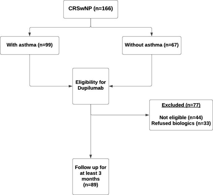 Conclusion: Even with associated comorbid asthma in patients with CRSwNP, treatment with dupilumab could improve the quality of life, olfactory symptoms, and asthma symptom control.