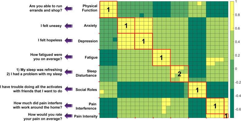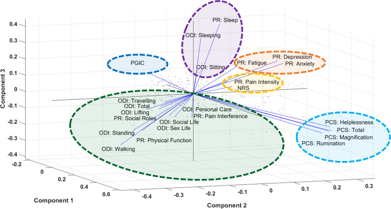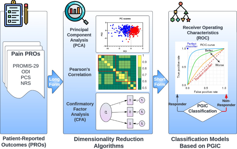 Results: The shortened versions of the questionnaires presented almost identical accuracy for classifying the therapy outcomes as compared to the validated full-length versions. In addition, principal component analysis was performed on all the PROs and showed a robust clustering of pain intensity, psychological factors, physical function, and sleep across multiple PROs. A selected set of questions captured from multiple PROs can provide adequate information for measuring neurostimulation therapy outcomes.