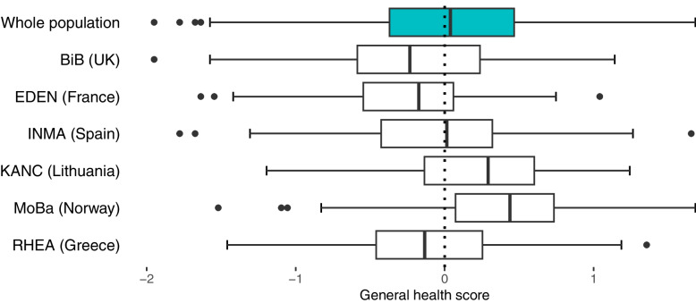 Background: Early-life environmental exposures are suspected to be involved in the development of chronic diseases later in life. Most studies conducted so far considered single or few exposures and single-health parameter. Our study aimed to identify a childhood general health score and assess its association with a wide range of pre- and post-natal environmental exposures.