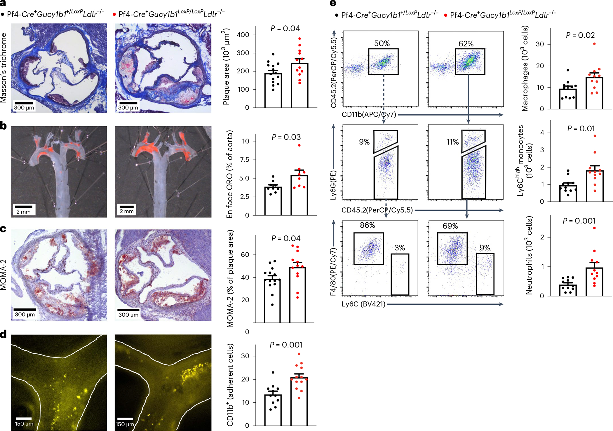 Loss of soluble guanylyl cyclase in platelets contributes to atherosclerotic plaque formation and vascular inflammation