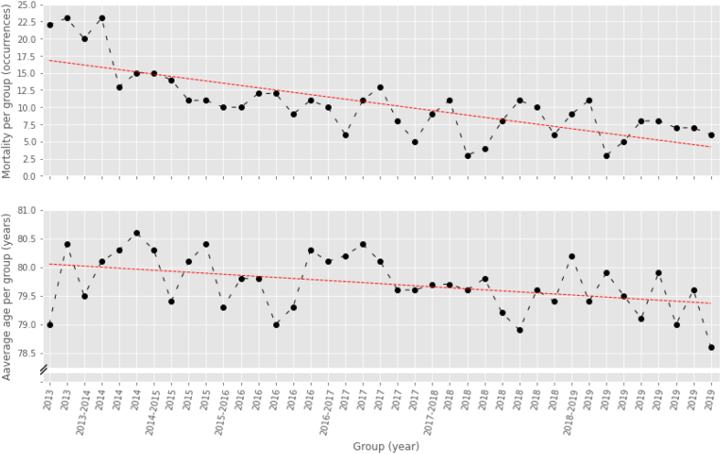Conclusions: The temporal validation of the TAVI 30-day mortality prediction models showed that the models refitted over time are more stable and accurate when compared to the frozen models. This highlights the importance of repeatedly refitted models over time to improve or at least maintain their performance stability. The non-parametric approach did not show improvement over the parametric approach.