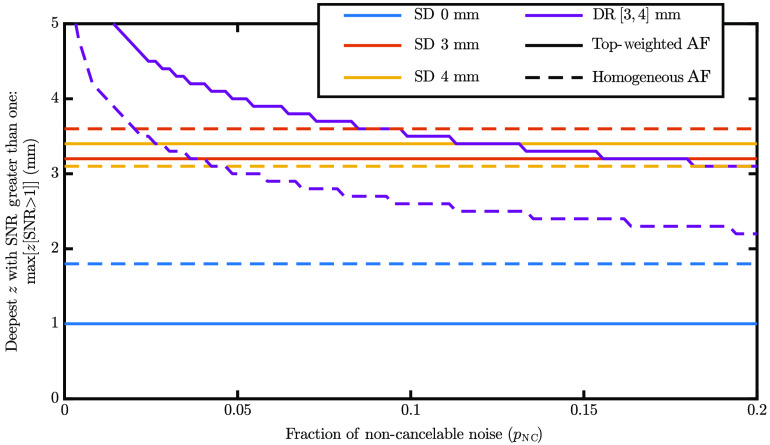 Conclusions: DR cancelable noise may be designed (e.g., through the use of source multiplexing), and indications point to the AF contributors' distribution being truly surface-weighted in vivo. Successful and worthwhile implementation of DR DiFC depends on these considerations, but results point to DR DiFC having possible advantages over traditional DiFC.