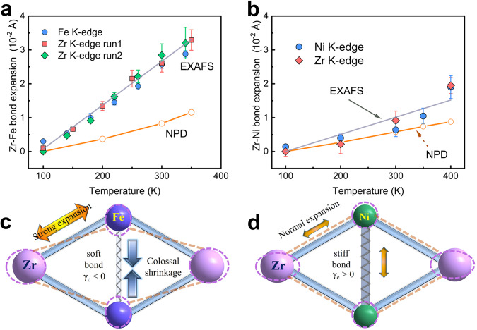 Negative thermal expansion (NTE) alloys possess great practical merit as thermal offsets for positive thermal expansion due to its metallic properties. However, achieving a large NTE with a wide temperature range remains a great challenge. Herein, a metallic framework-like material FeZr2 is found to exhibit a giant uniaxial (1D) NTE with a wide temperature range (93-1078 K, [Formula: see text]). Such uniaxial NTE is the strongest in all metal-based NTE materials. The direct experimental evidence and DFT calculations reveal that the origin of giant NTE is the couple with phonons, flexible framework-like structure, and soft bonds. Interestingly, the present metallic FeZr2 excites giant 1D NTE mainly driven by high-frequency optical branches. It is unlike the NTE in traditional framework materials, which are generally dominated by low energy acoustic branches. In the present study, a giant uniaxial NTE alloy is reported, and the complex mechanism has been revealed. It is of great significance for understanding the nature of thermal expansion and guiding the regulation of thermal expansion.